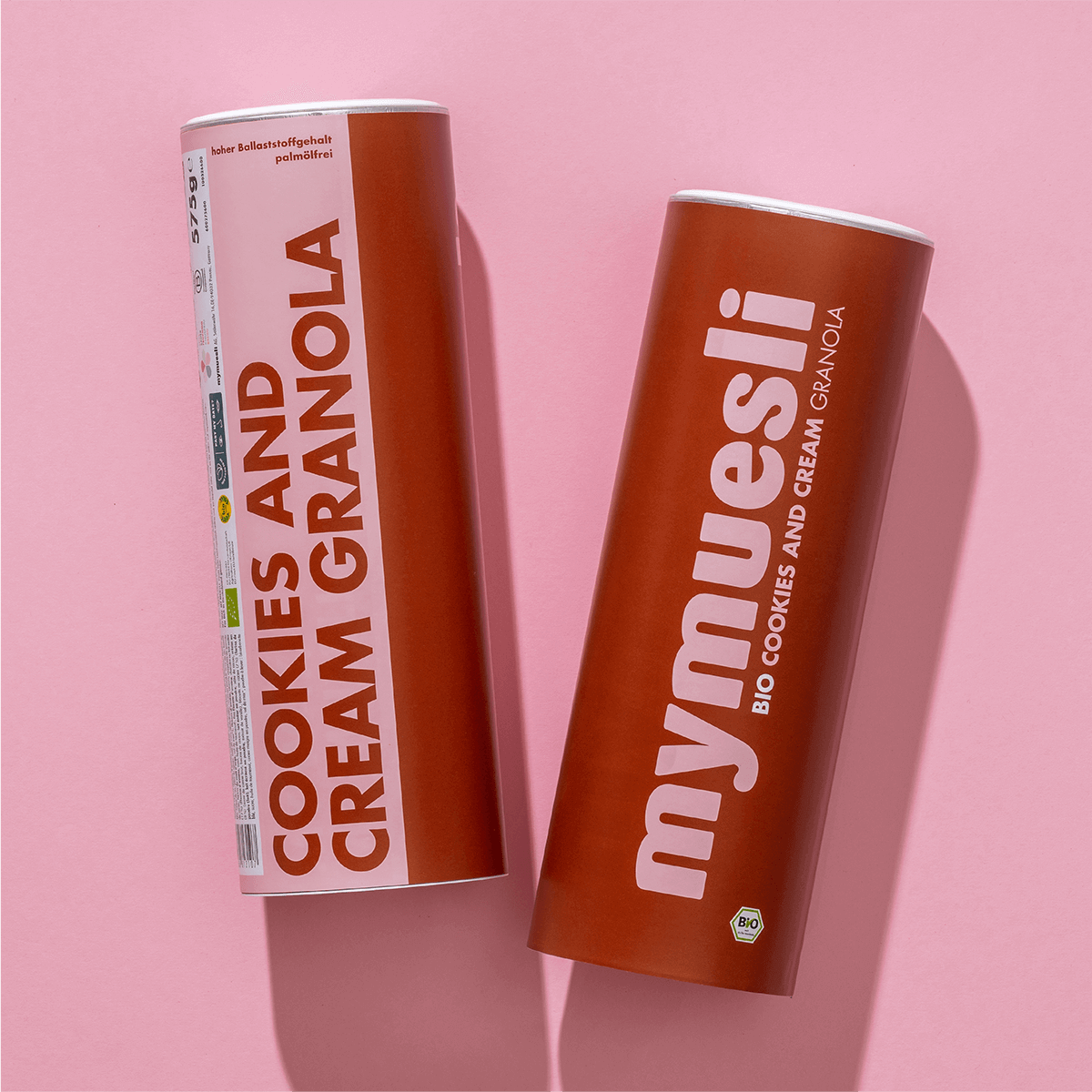 chocolade-crunchy (32%) (volkoren havervlokken, ruwe rietsuiker, zonnebloemolie, tarwevlokken, rijstmeel, cacaomassa, kokosrasp, cacaopoeder, rijstsiroop, cacaoboter, gerstemoutmeel, zeezout*), havervlokken, granola-crunchy (17%) (havervlokken, honing, zonnebloemolie), fijne havervlokken, melkchocolade (8%) (ruwe rietsuiker, cacaoboter, volle melkpoeder, cacaomassa, roompoeder (melk), magere melkpoeder, vanille extract), cacaokoekjes (7%) (tarwemeel, suiker, zonnebloemolie, magere cacaopoeder, zeezout*, rijsmiddel: natriumwaterstofcarbonaat*, vanille extract, antioxidant: rozemarijnextract), biscuitjes in yoghurt-citroen chocolade (7%) (tarwemeel, ruwe rietsuiker, boter (melk), cacaoboter, yoghurtpoeder (melk), volle melkpoeder, glansmiddel: Arabische gom, citroenolie, zeezout*). Kan noten, pinda's, soja, lupine, eieren en sesamzaad bevatten.Alle ingrediënten zijn van biologische landbouw, behalve het met een *.