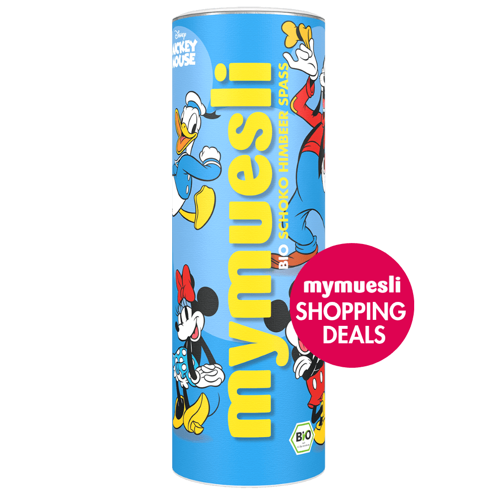 chocolade-crunchy* (46%) (volkoren havervlokken*, ruwe rietsuiker*, zonnebloemolie*, tarwevlokken*, rijstmeel*, cacaomassa*, kokosrasp*, cacaopoeder*, rijstsiroop*, cacaoboter*, gerstemoutmeel*, zeezout), havervlokken*, chocolade-cornflakes* (5%) (maïs*, ruwe rietsuiker*, cacaoboter*, cacaomassa*, rijstsiroop*, glansmiddel: Arabische gom*, zeezout), geroosterd graan met cacao* (4%) (rijstmeel*, ruwe rietsuiker*, cacaopoeder*, tarwemeel*, gerstemeel*, havermeel*, gerstemout*), gevriesdroogde frambozen* (2%).