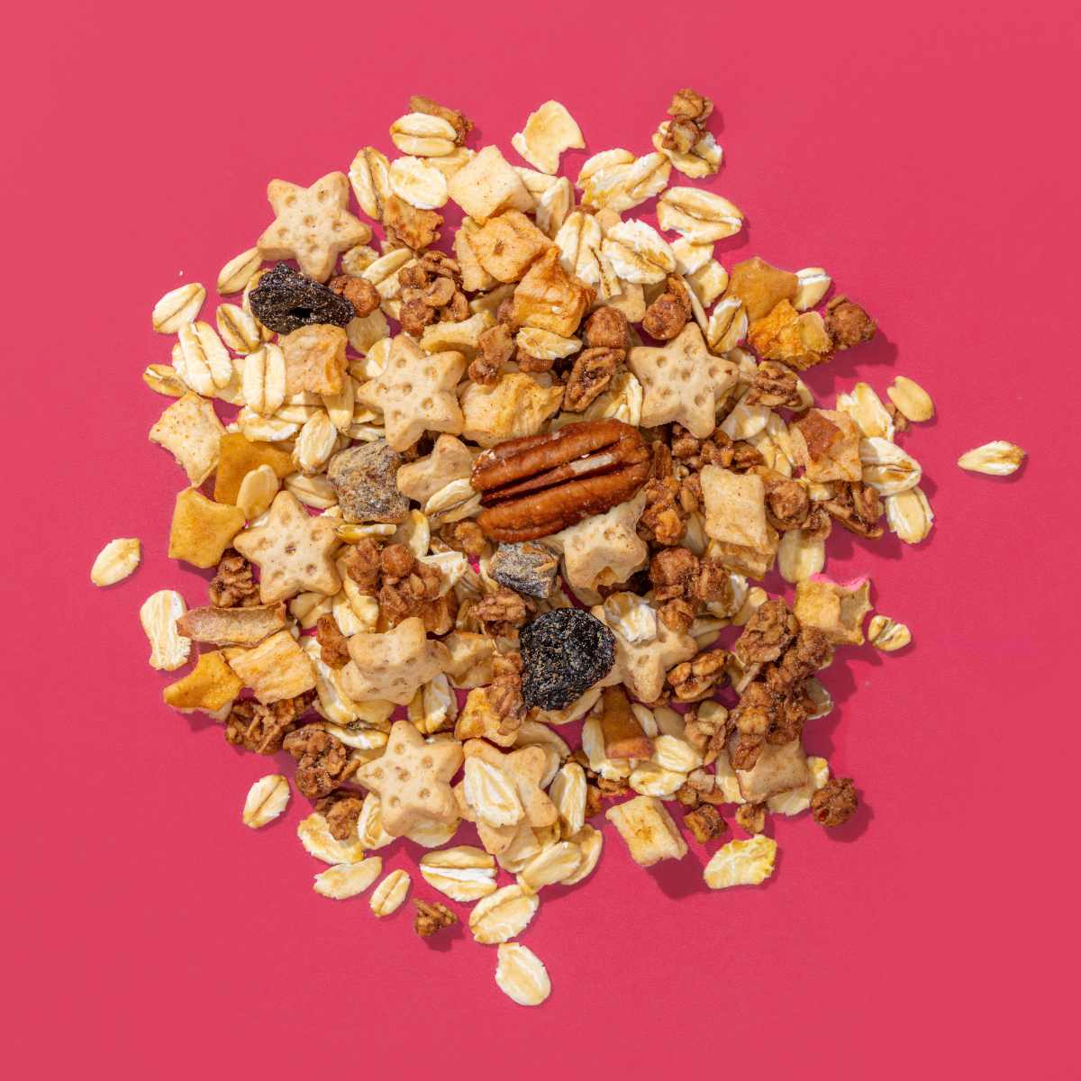 flocons d'avoine, crunchy croquants de granola avec des épices (30%) (farine d'avoine complète, sucre de canne, huile de tournesol, sirop de riz, farine de riz, cacao en poudre, pâte de cacao, farine de malt d’orge, noix de coco déshydratée, sel de mer*, beurre de cacao, cannelle, anis moulu, clous de girofle, coriandre, cardamome), pomme séchées en morceaux (12%), biscuits aux pommes cuites au four aux épices (10%) (farine de blé, sucre de canne brut, huile de tournesol, amidon de blé, poudre de pomme, raisins secs hachés, mélasse de canne à sucre, mélange d'épices (sucre de canne complet, sucre de fleur de