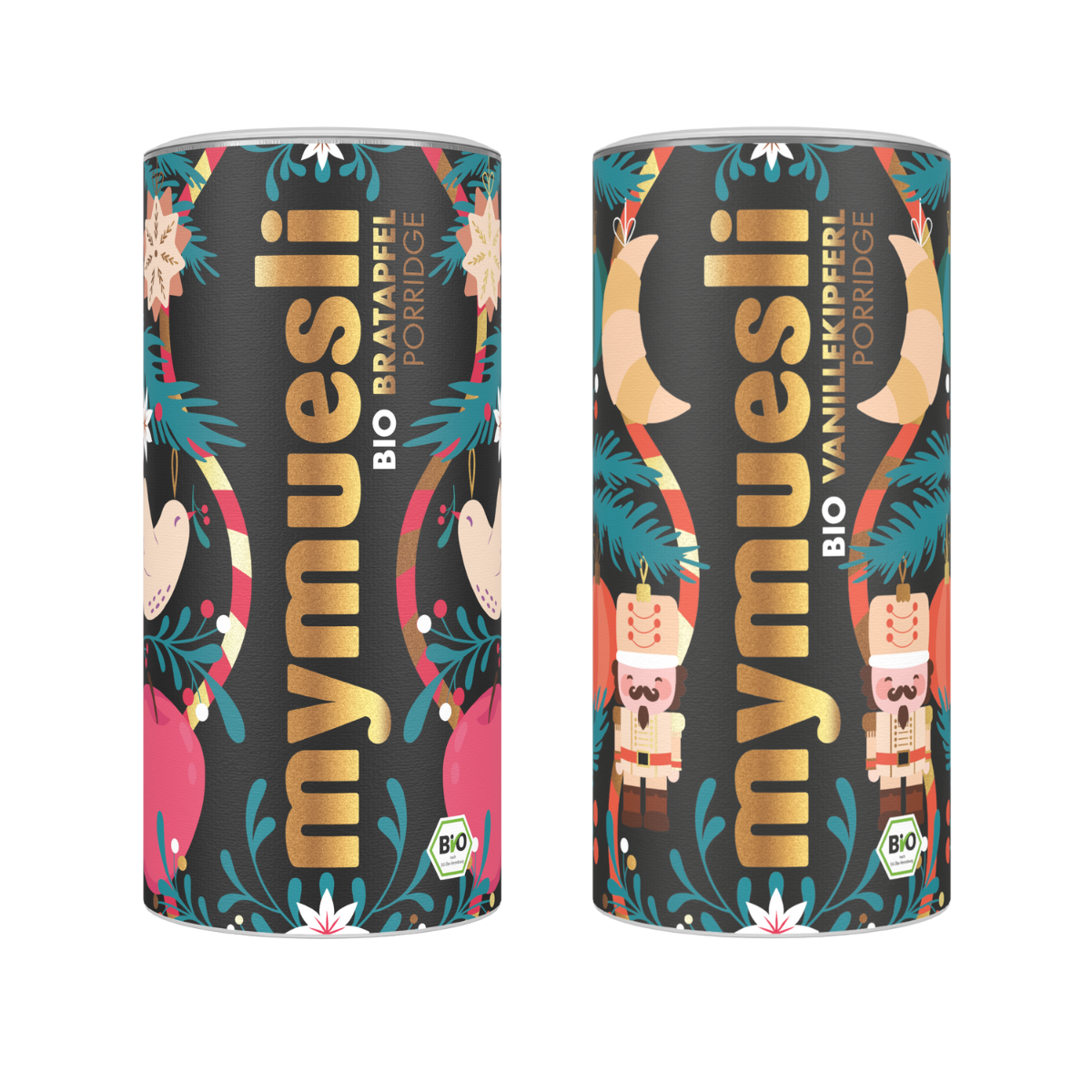 tonkaboon, vanille, peper, sinaasappel, citroen, kruidnagel), zeezout*, rijsmiddel: natriumwaterstofcarbonaat*, natuurlijk bourbon-vanille aroma, karamelsuikersiroop, antioxidant: rozemarijnextract), gedroogde appelstukjes (11%), rozijnen, geroosterde amandelen (6%), kaneel, zonnebloemolie. Kan andere noten, pinda's, soja, lupine, eieren, sesamzaad en melk bevatten.